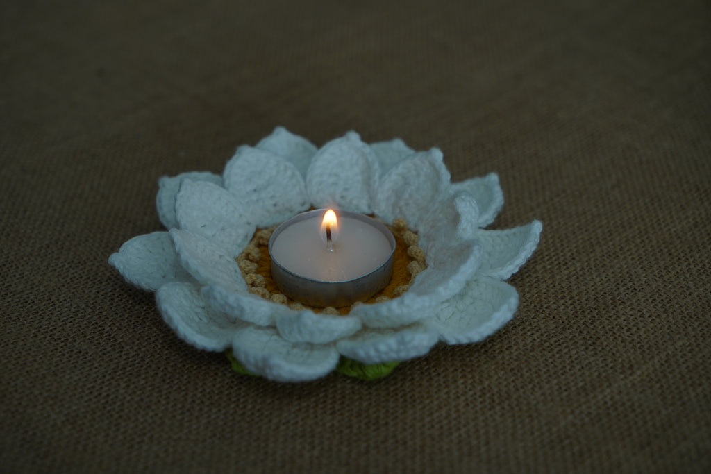 Handmade Crochet Lotus tea light holder and Rangoli – Multi-Purpose Festive Décor