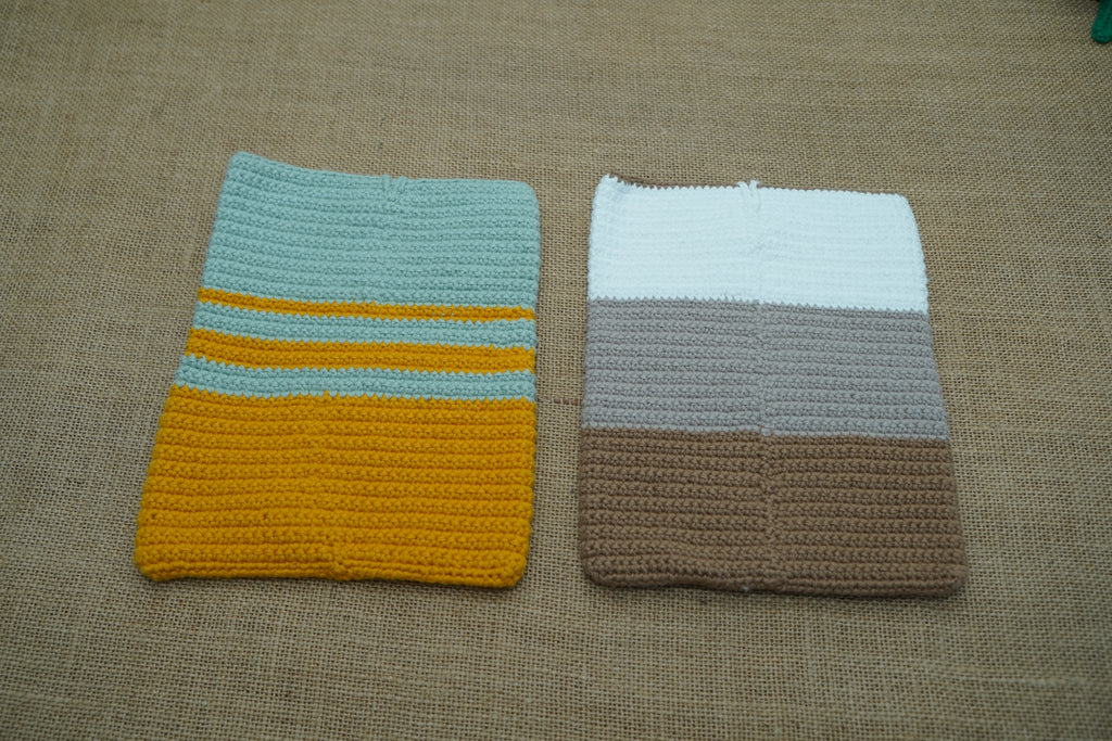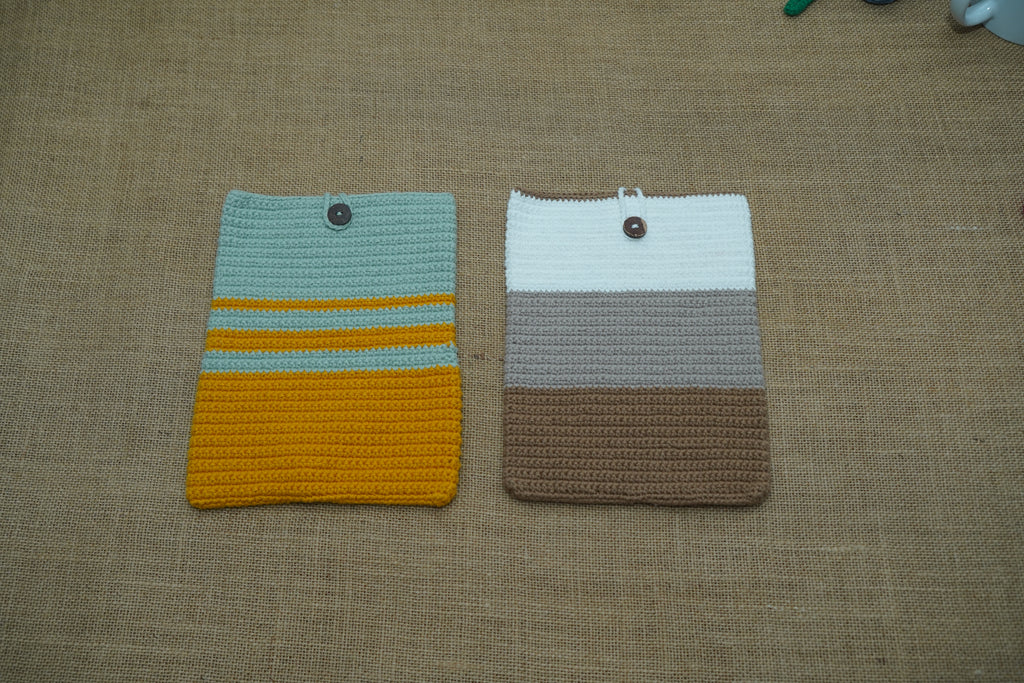 This handmade crochet Kindle sleeve is a compact and eco-friendly Kindle cover crafted by skilled women artisans. Designed with a soft yet durable crochet texture, it protects your device from dust and light scratches while staying lightweight and reusable. The snug fit ensures your Kindle stays secure without bulk, and the open-mouth design allows quick slide-in access. Finished with a single natural wooden button, this artisan crochet pouch adds simple elegance and rustic charm. Perfect for everyday use, travel, or sustainable gifting, this handmade Kindle case blends style with functionality.