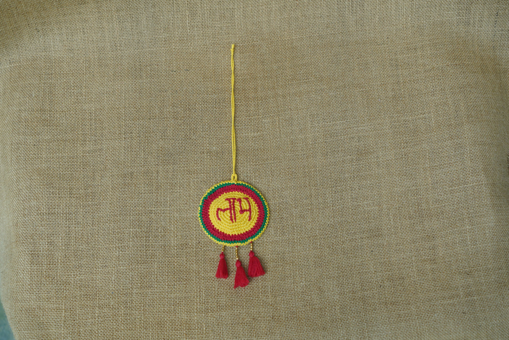 Celebrate Diwali with positivity and blessings through our handcrafted Shubh Labh Dangler. Crocheted in Hindi script by skilled women artisans, this eco-friendly charm radiates good fortune and prosperity. Hang it at your entrance, puja room, car, or even use as a stylish bag charm—it brings auspicious energy everywhere. Blending tradition with modern design, this reusable décor piece is a symbol of love, care, and festive joy. By choosing it, you not only invite success into your home but also support rural women artisans this Diwali. A perfect gift of good luck and celebration.